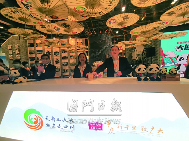 第八屆澳門國(guó)際旅遊(產(chǎn)業(yè))博覽會(huì)上,四川館 • 重慶館開館儀式暨二○二○中國(guó)(四川)大熊貓文化旅遊周舉行啟動(dòng)儀式。省文旅廳相關(guān)人士指出,該活動(dòng)貫徹落實(shí)巴蜀文化旅遊走廊建設(shè)工作,吸引澳門居民親身體驗(yàn)“四川——重慶一程多站”精品線路產(chǎn)品。儘管出入境遊還未放開,但希望提前謀劃,為疫後恢復(fù)下一步先手棋。