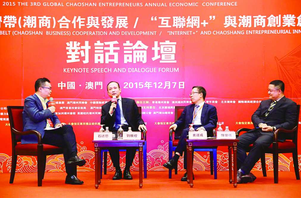 昨日下午兩點半假威尼斯人舉行的天下潮商經(jīng)濟年會對話論壇二:“絲綢之路經(jīng)濟帶(潮商)合作與發(fā)展”上,劉雅煌表示,全球有非常多的潮商以外的聯(lián)動,跟當?shù)氐恼?、各個族群、各個階層都有密切關(guān)係,發(fā)揮三千萬潮汕外延作用。