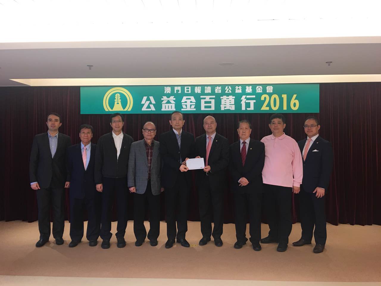 澳門電力股份有限公司執(zhí)委會主席梁華權(quán)、執(zhí)行董事施雨林、執(zhí)委會首席顧問岳宗斌、顧問阮毓明、通訊及公共事務(wù)辦公室高級經(jīng)理聶麗冰送交十萬元善款。由公益基金會會長馮志強(qiáng),副會長飛安達(dá)、吳柱邦,理事長黃國勝,副理事長賀定一、許建章、崔家榮、姚嘉聰,理事李永順、王思弘代表接收。