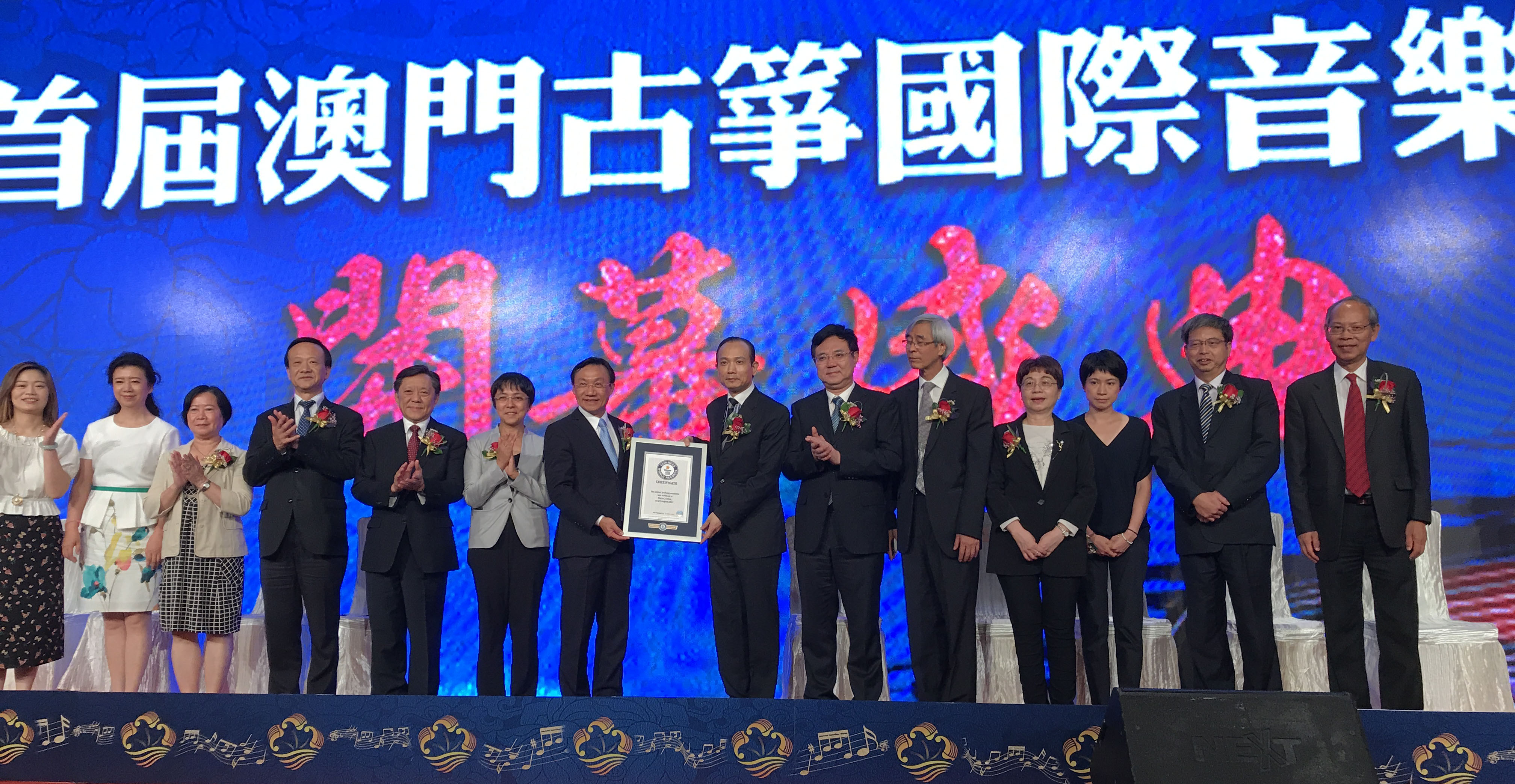 澳門創(chuàng)意產(chǎn)業(yè)協(xié)會、上海民族樂器一廠、嶺南文化藝術(shù)交流促進(jìn)會合辦的“盛世華箏 • 首屆澳門國際古箏音樂節(jié)”昨日假澳門喜來登金沙城中心酒店五樓喀什廳開幕,邀請世界各地古箏愛好者同臺演奏,最終有二千五百二十人挑戰(zhàn)成功,打破世界健力士紀(jì)錄。