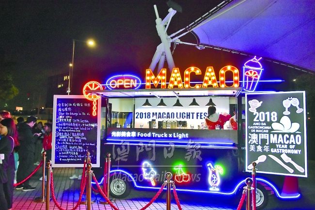 第三條路線“尋味歲月”,途經(jīng)嘉模堂區(qū)龍環(huán)葡韻及新地點(diǎn)氹仔街市、北帝廟及北帝廟前地等。北帝廟前地的“尋找記憶的味道”展演,讓觀眾了解澳門不同年代的飲食文化和習(xí)慣,體現(xiàn)澳門“創(chuàng)意城市美食之都”對美食文化的傳承與創(chuàng)新;氹仔街市的流動性投影表演——“驚艷味蕾”,則展示澳門多元美食,呈獻(xiàn)一場饕餮盛宴。