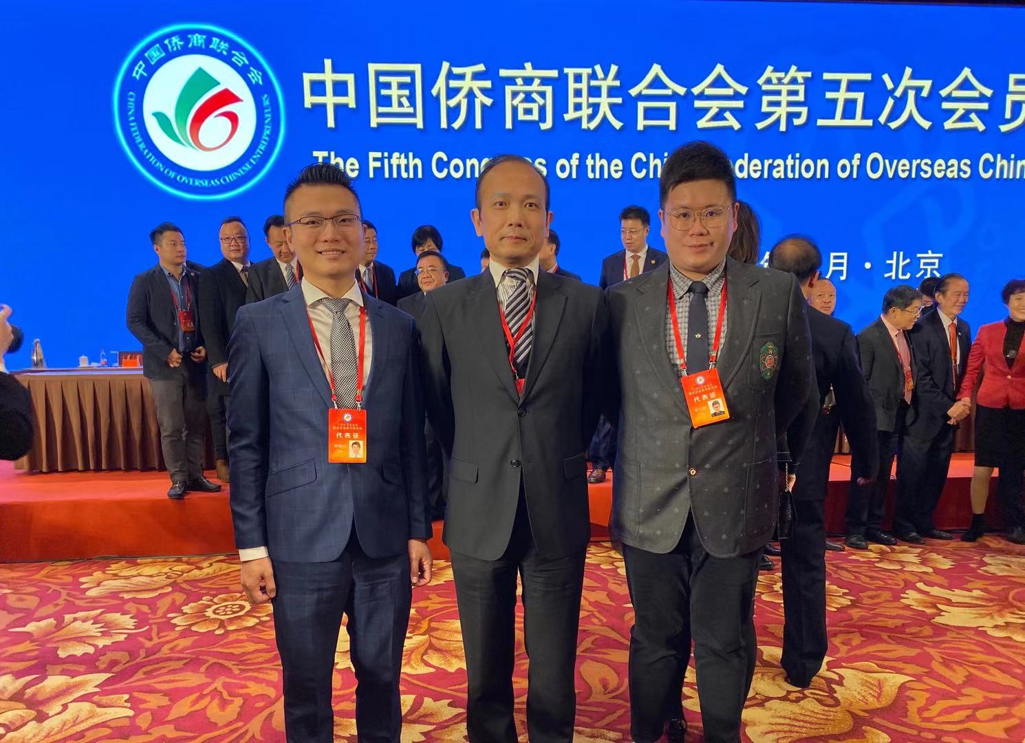 全國僑聯(lián)常委劉雅煌(中)與澳門僑青合影