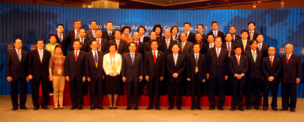 國(guó)家主席胡錦濤在“博鰲亞洲論壇2011年年會(huì)”活動(dòng)上,親切會(huì)見(jiàn)了出席“華商圓桌會(huì)議”的本澳萬(wàn)國(guó)控股集團(tuán)主席劉雅煌,以及泰國(guó)正大集團(tuán)董事長(zhǎng)謝國(guó)民、印尼力保集團(tuán)董事局主席李文正、香港世茂集團(tuán)董事局主席許榮茂、香港亞洲金融集團(tuán)主席陳有慶、印尼金光集團(tuán)董事長(zhǎng)黃志源、福耀玻璃工業(yè)集團(tuán)股份有限公司董事長(zhǎng)曹德旺、新加坡金鷹國(guó)際集團(tuán)董事局主席陳江和、東莞玖龍紙業(yè)有限公司董事長(zhǎng)張茵等知名華商領(lǐng)袖。